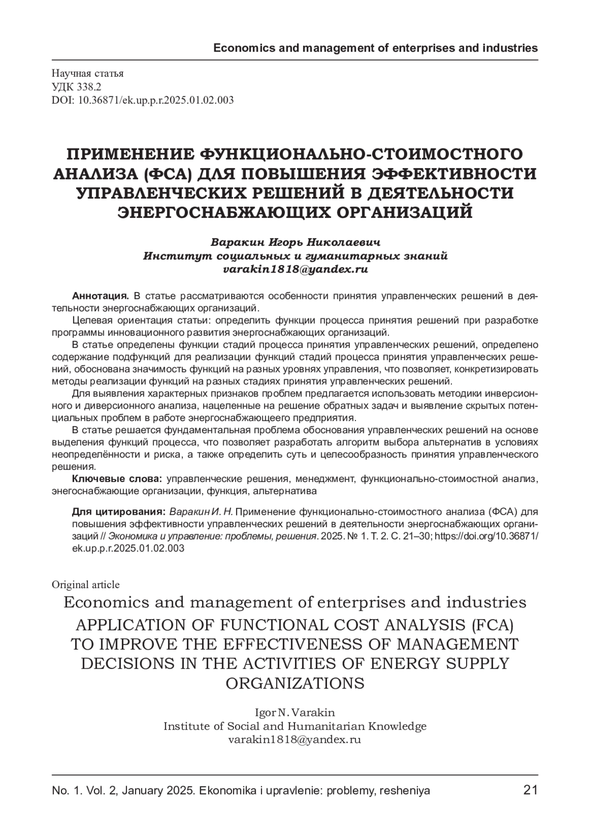 В статье рассматриваются особенности принятия управленческих решений в деятельности энергоснабжающих организаций.
