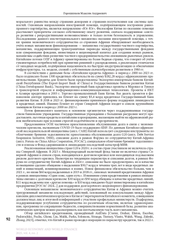 Ключевые фразы: финансово-экономическое сотрудничество, кредитное финансирование, Китай, Северная Африка, государственно-частное партнерство, мировая экономика, мировые финансы
