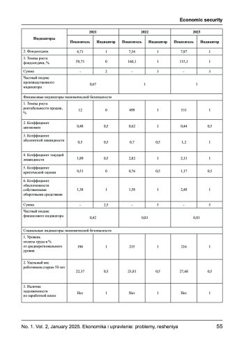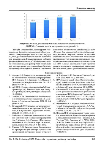 1. Антонов И. С. Оценка и прогнозирование уровня экономической безопасности предприятия / И. С. Антонов, К. С. Кривякин, Н. Н. Макаров // Экономика и предпринимательство. 2022. № 2 (139). 985-991 с. EDN: CBUZCP