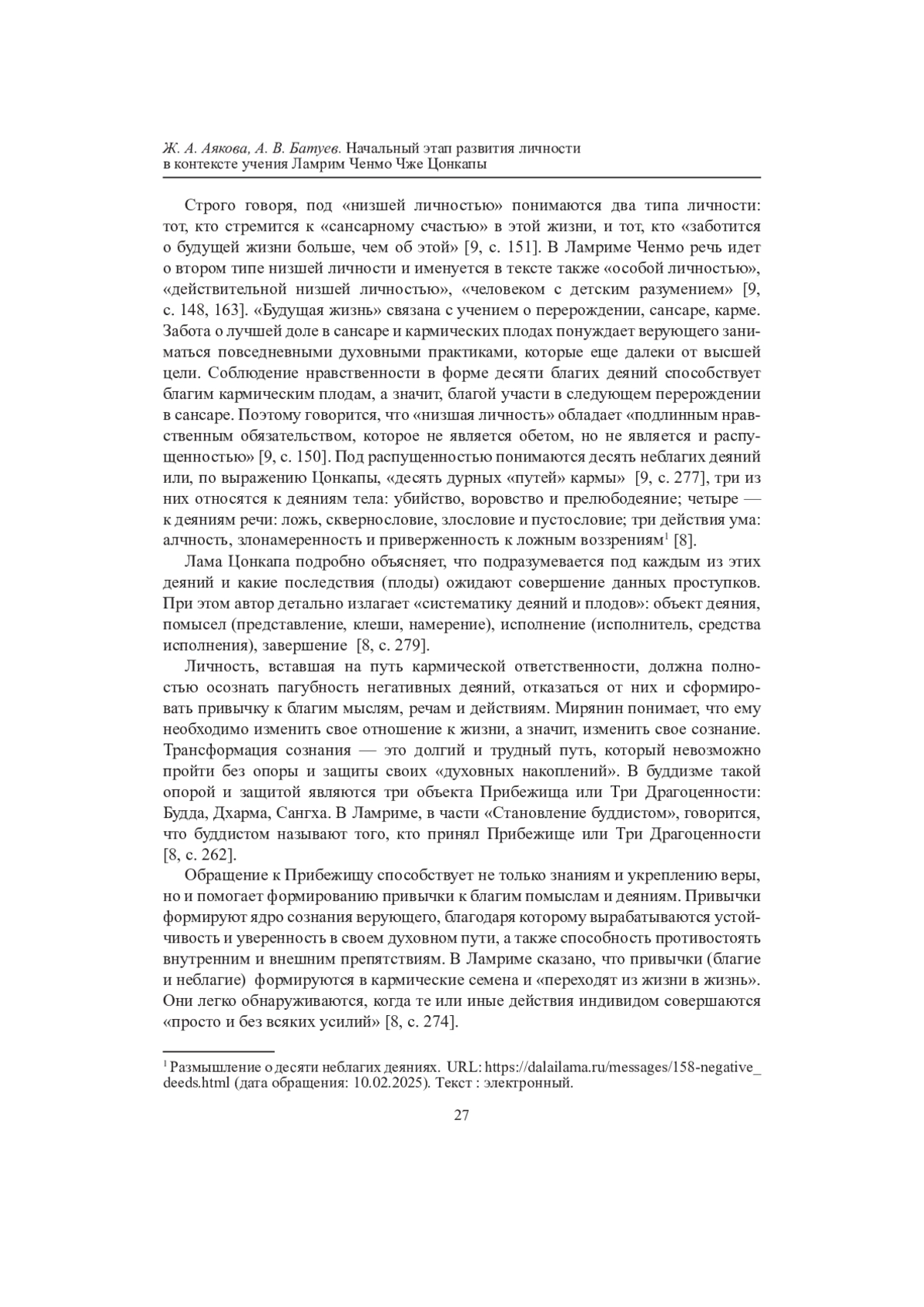 2. Аякова Ж. А. О драгоценности человеческой жизни в буддийском учении // Народонаселение Сибири и Дальнего Востока: проблемы сбережения и развития. Улан-Удэ: Изд-во Бурят. гос. ун-та, 2021. С. 43-50. Текст: непосредственный. EDN: YQLLOM