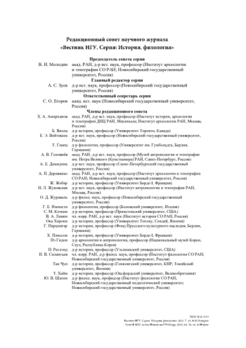 Журнал: ВЕСТНИК НГУ. СЕРИЯ: ИСТОРИЯ, ФИЛОЛОГИЯ
