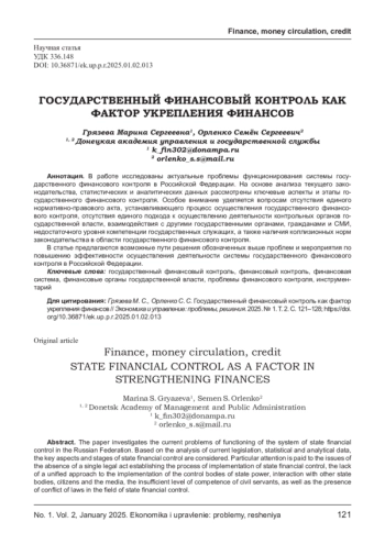 В работе исследованы актуальные проблемы функционирования системы государственного финансового контроля в Российской Федерации. На основе анализа текущего законодательства, статистических и аналитических данных рассмотрены ключевые аспекты и этапы государственного финансового контроля. Особое внимание уделяется вопросам отсутствия единого нормативно-правового акта, устанавливающего процесс осуществления государственного финансового контроля, отсутствия единого подхода к осуществлению деятельности контрольных органов государственной власти, взаимодействия с другими государственными органами, гражданами и СМИ, недостаточного уровня компетенции государственных служащих, а также наличия коллизионных норм законодательства в области государственного финансового контроля.