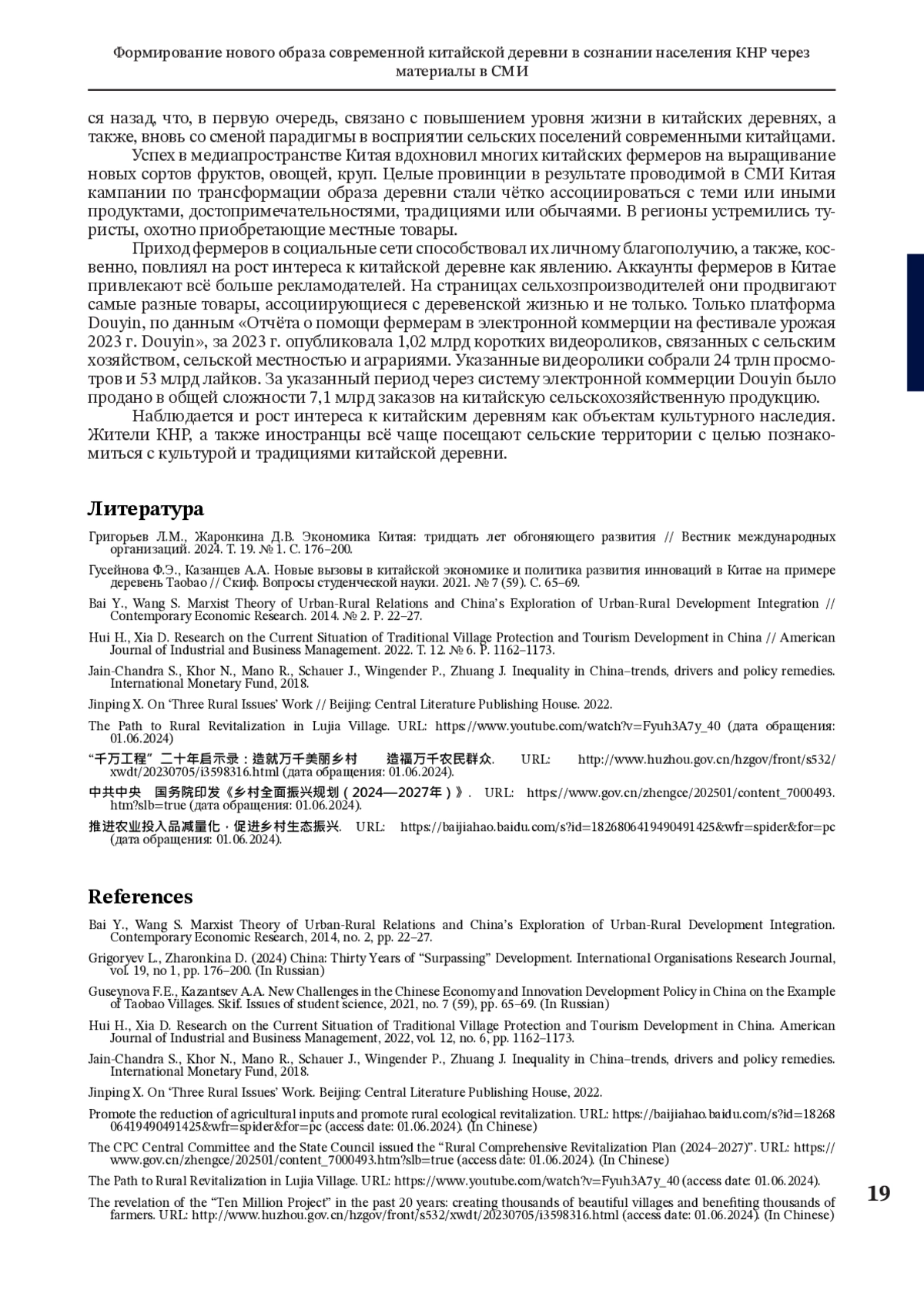 Статья: Формирование нового образа современной китайской деревни в сознании населения КНР через материалы в СМИ (2025)