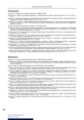 8. Надуваев К.А., Медведева О.С. Использование PR-технологий в формировании позитивного имиджа организации // Экономика и бизнес: теория и практика. 2021. № 6-2 (76). С. 104-110.