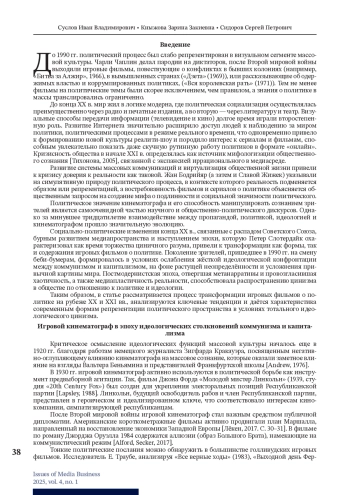 4. Белов С.И. Манипулятивный потенциал массовой культуры как инструмента политического воздействия // Вестник Российского университета дружбы народов. Серия: Политология. 2024. № 2. С. 254-262.