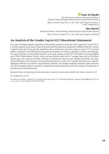 This paper investigates gender disparities in educational attainment across the Gulf Cooperation Council (GCC) countries using data from recent rounds of internationally benchmarked assessments (TIMSS and PIRLS). Contrary to global trends where boys typically outperform girls in mathematics and show parity in science, GCC countries exhibit a persistent and sizable gap favoring girls across grades and subjects, especially in science and language. The paper identifies a hump-shaped trajectory in the gap, peaking around 2015–2016 before narrowing slightly post-COVID. While Bahrain, Kuwait, Oman, and Saudi Arabia mirror the GCC average, Qatar and the UAE show smaller gaps and occasional reversals. Drawing on international literature and regional specificities, the paper explores biological, environmental, and biopsychosocial factors, as well as GCC-specific dynamics such as gendersegregated networks and women’s empowerment initiatives. The findings challenge dominant global narratives and call for targeted research and policy to address the potential long-term social and economic consequences of persistent male underachievement.