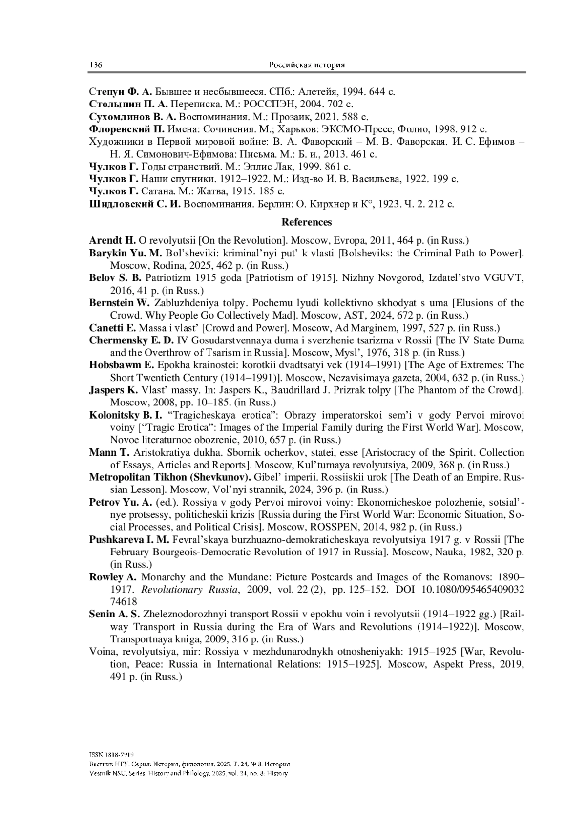 7. Колоницкий Б. И. «Трагическая эротика»: Образы императорской семьи в годы Первой мировой войны. М.: НЛО, 2010. 657 с.
