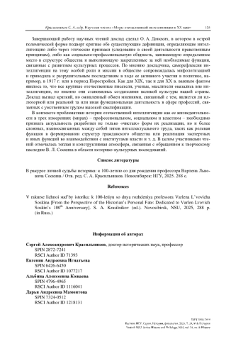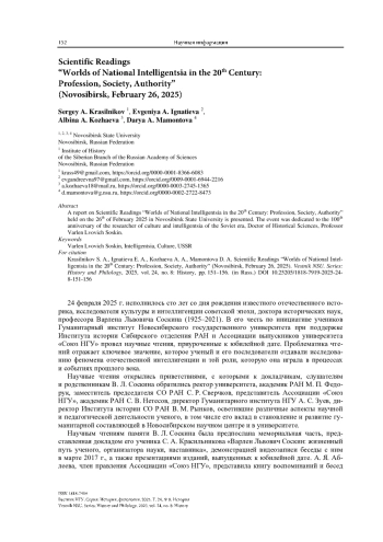 Представлен отчет о Научных чтениях «Миры отечественной интеллигенции в XX веке: профессия, общество, власть», проходивших на базе Новосибирского государственного университета 26 февраля 2025 г. Мероприятие было посвящено 100-летию со дня рождения исследователя культуры и интеллигенции советской эпохи, доктора исторических наук, профессора Варлена Львовича Соскина.