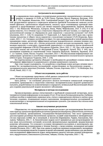 Статья: Обоснование выбора биологического объекта для создания экспериментальной модели хронического пульпита (2025)