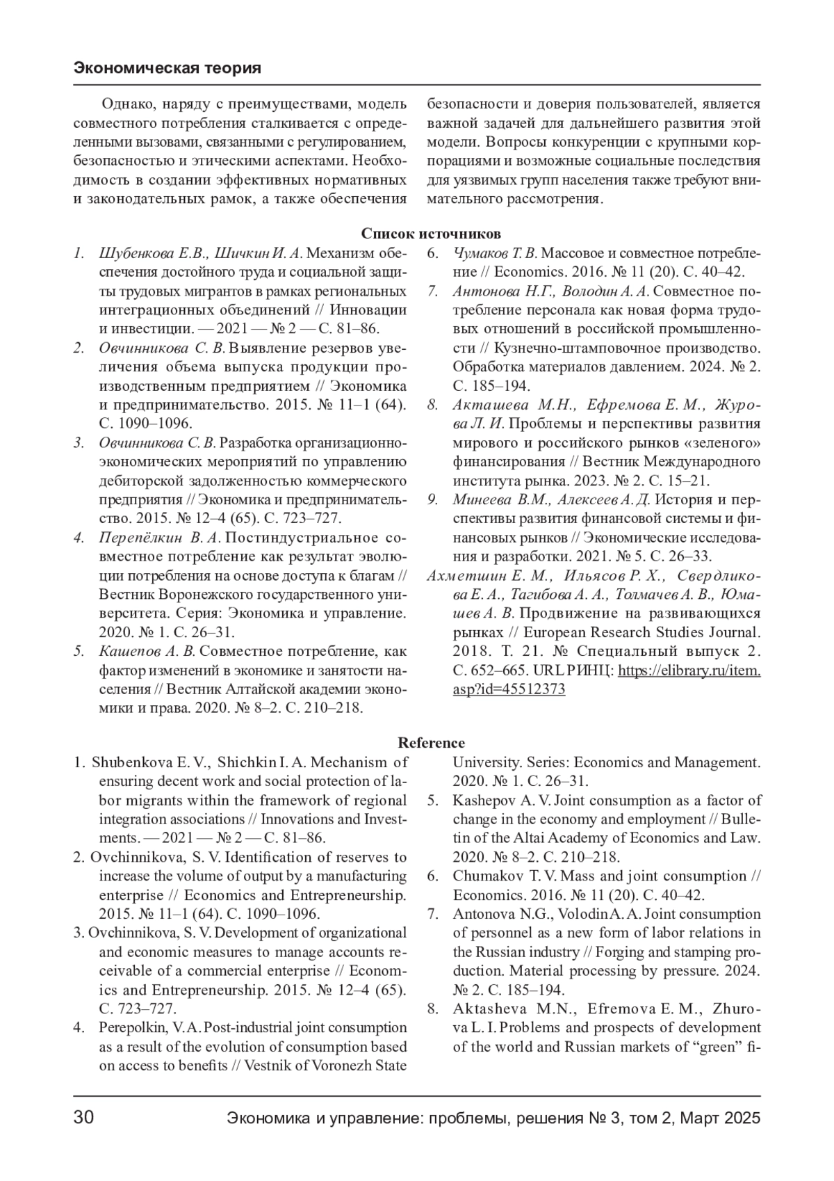6. Чумаков Т. В. Массовое и совместное потребление // Economics.