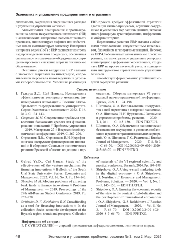 1. Гельруд Я.Д., Цуй Цзянань. Исследование эффективности венчурного механизма финансирования инноваций // Вестник Южно-Уральского государственного университета. Серия: Экономика и менеджмент. 2022. Т. 16.№ 3. С. 134-143. EDN: GZIEIA