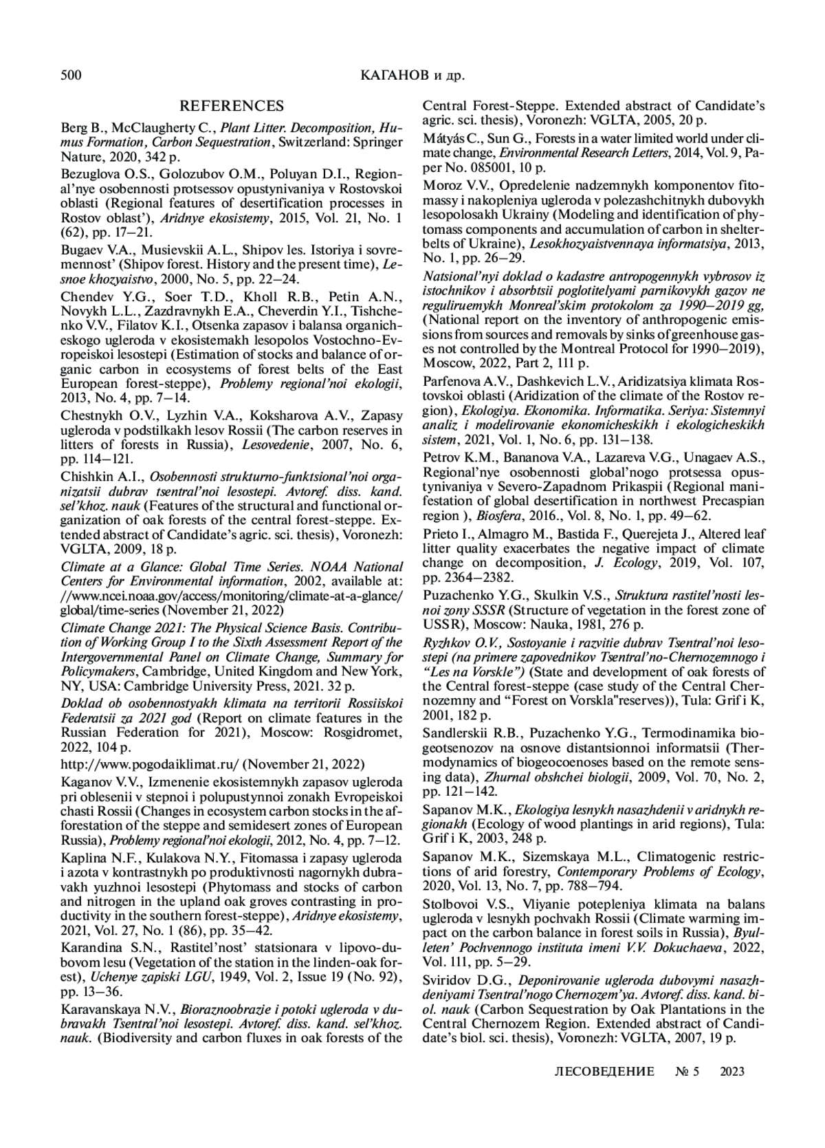 6. Каганов В.В. Изменение экосистемных запасов углерода при облесении в степной и полупустынной зонах Европейской части России // Проблемы региональной экологии. 2012. № 4. С. 7–12. EDN: PILYFV