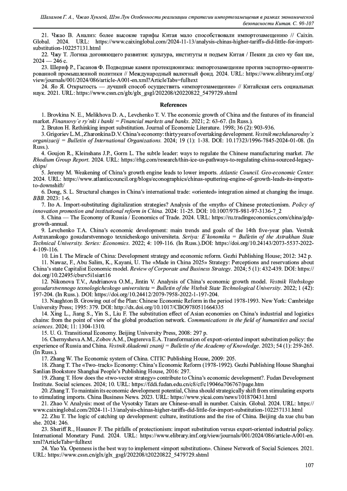 23. Шериф Р., Гасанов Ф. Подводные камни протекционизма: импортозамещение против экспортно-ориентированной промышленной политики // Международный валютный фонд. 2024. URL: https://www.elibrary.imf.org/view/journals/001/2024/086/article-A001-en.xml?ArticleTabs=fulltext