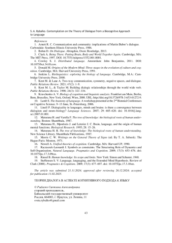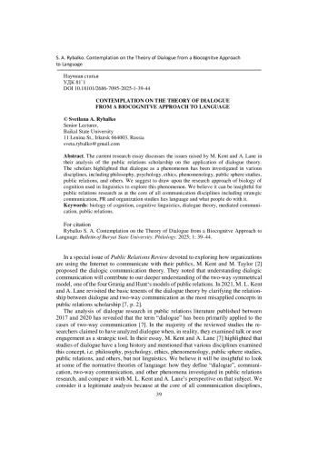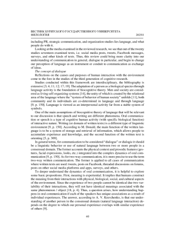 Ключевые фразы: биология познания, КОГНИТИВНАЯ ЛИНГВИСТИКА, теория диалога, опосредованная коммуникация, СВЯЗИ С ОБЩЕСТВЕННОСТЬЮ