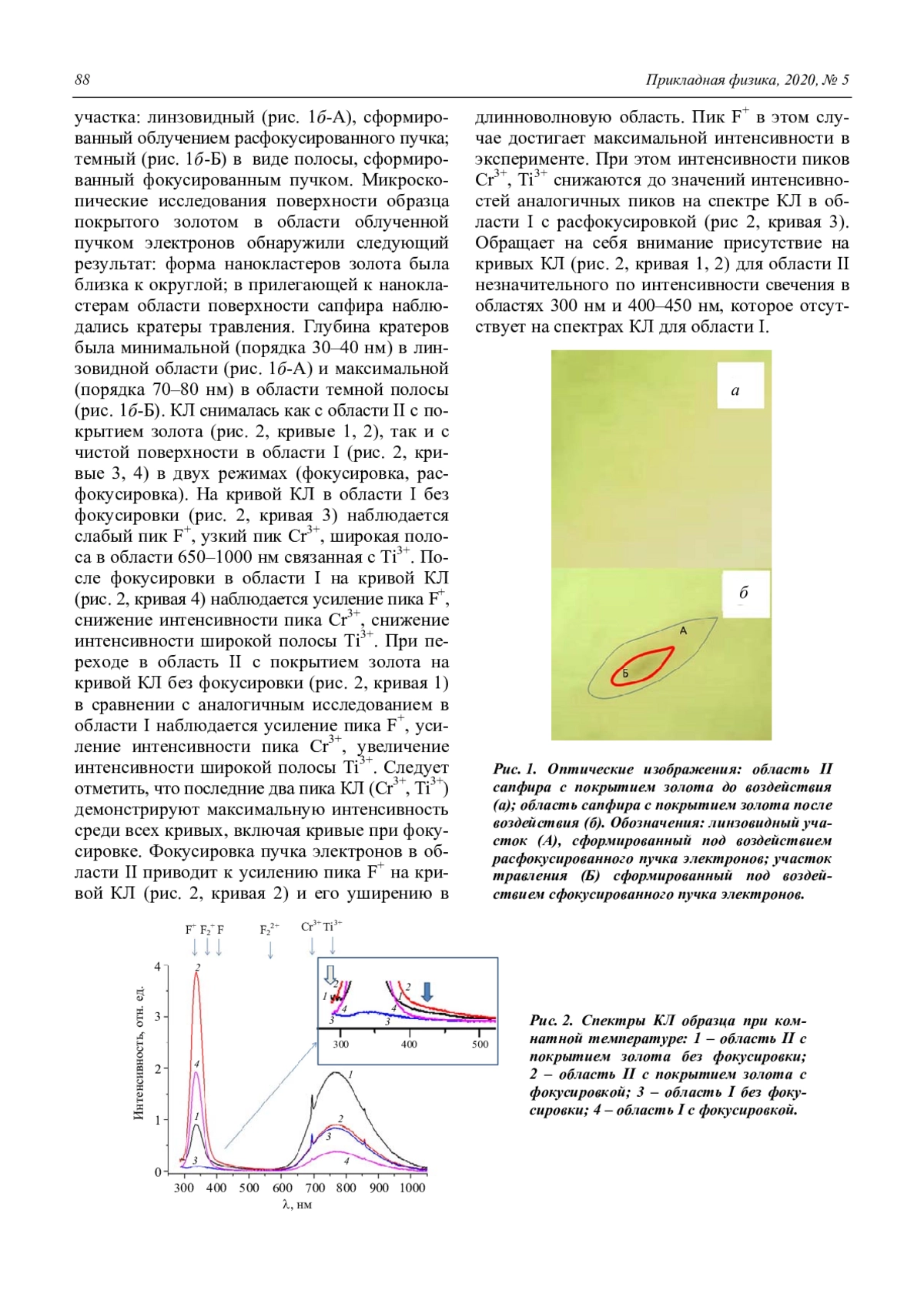 Статья: Влияние нанокластеров золота на катодолюминесценцию поверхности сапфира (2020)