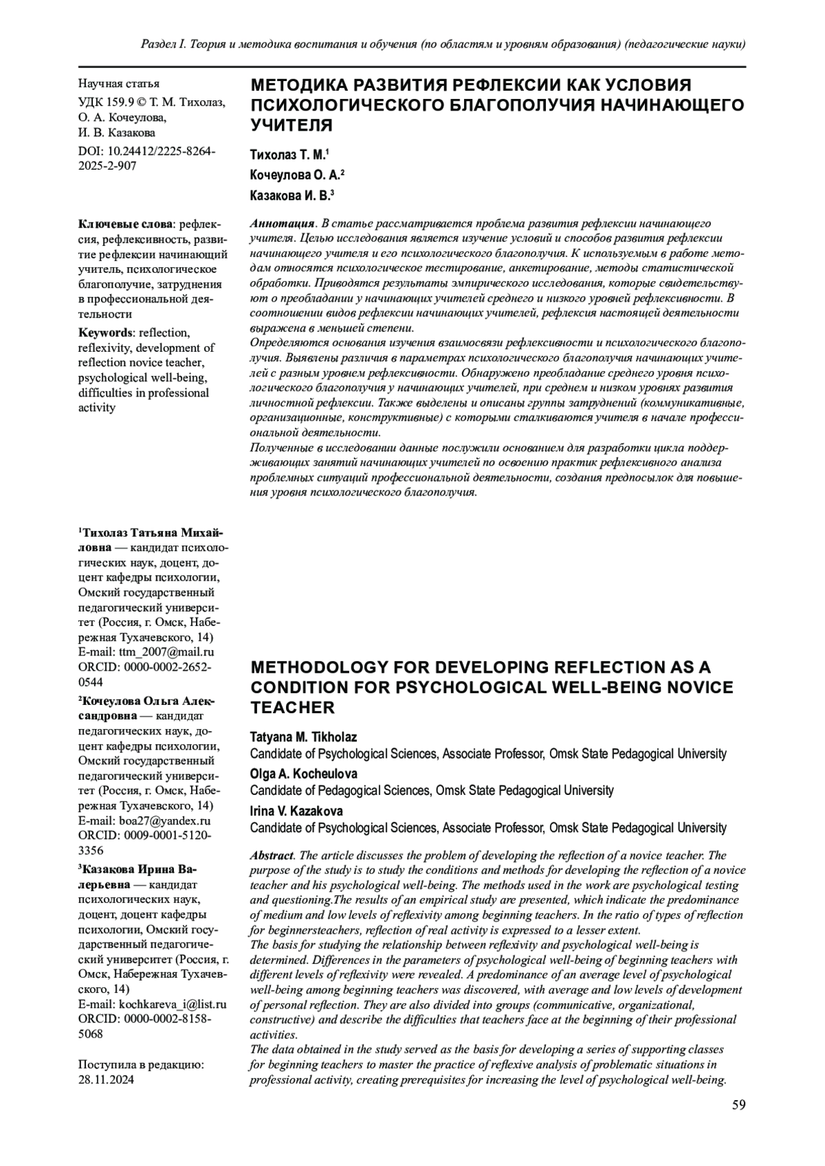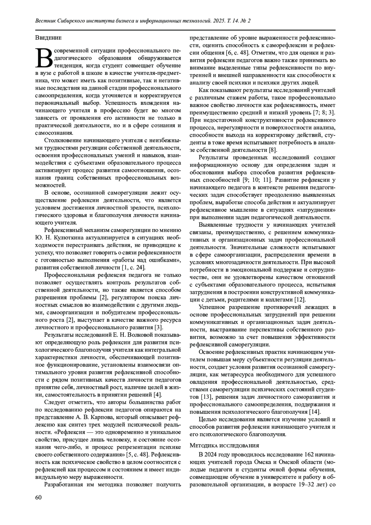 9. Савинова Т. В., Варданян Ю. В., Вдовина Н. А., Сюбаева Р. Р. Развитие рефлексии будущего педагога в процессе освоения психологических дисциплин // Мир науки. Педагогика и психология. 2023. Т. 11. № 4. URL: https://mir-nauki.com/PDF/59PSMN423.pdf
