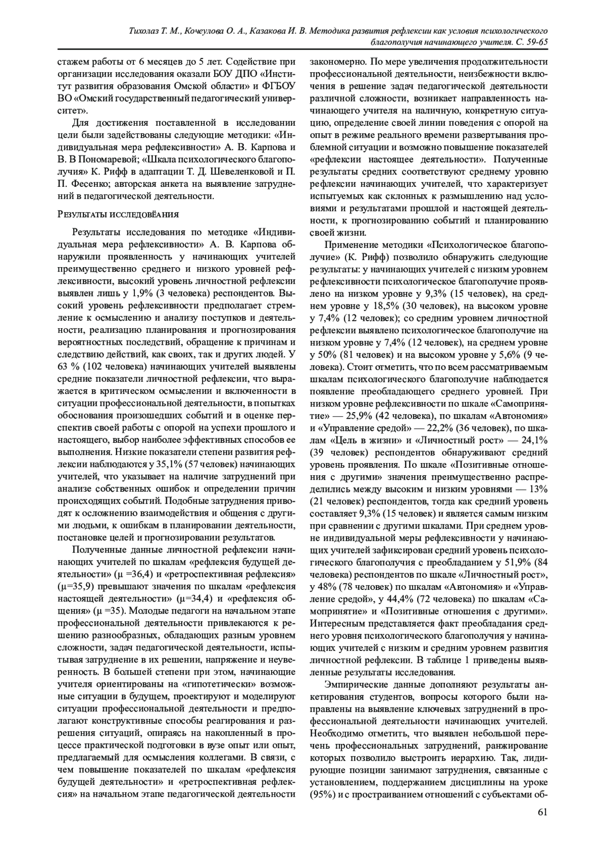 Полученные в исследовании данные послужили основанием для разработки цикла поддерживающих занятий начинающих учителей по освоению практик рефлексивного анализа проблемных ситуаций профессиональной деятельности, создания предпосылок для повышения уровня психологического благополучия.