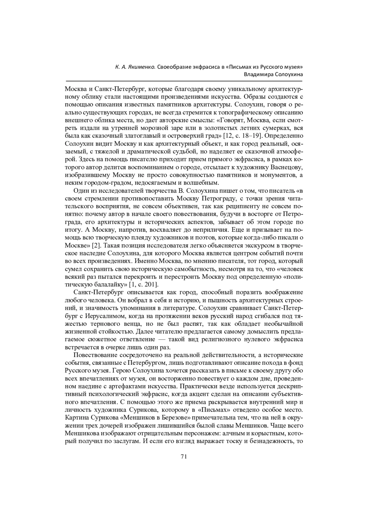 Статья: СВОЕОБРАЗИЕ ЭКФРАСИСА В «ПИСЬМАХ ИЗ РУССКОГО МУЗЕЯ» ВЛАДИМИРА СОЛОУХИНА (2025)