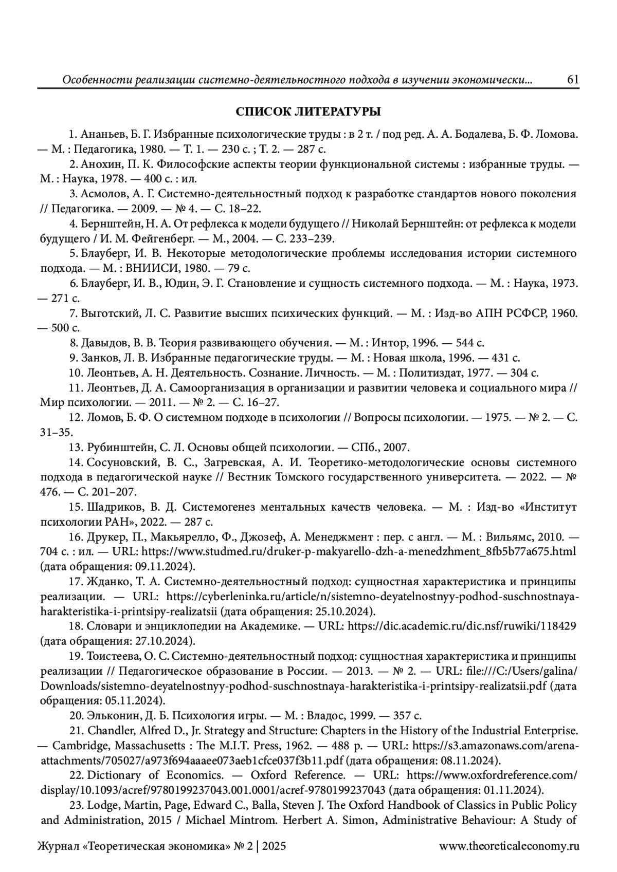 19. Тоистеева, О. С. Системно-деятельностный подход: сущностная характеристика и принципы реализации // Педагогическое образование в России. - 2013. - № 2. - URL: file:///C:/Users/galina/Downloads/sistemno-deyatelnostnyy-podhod-suschnostnaya-harakteristika-i-printsipy-realizatsii.pdf (дата обращения: 05.11.2024).