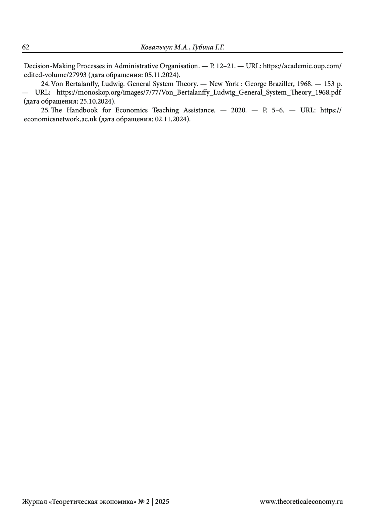 24. Von Bertalanffy, Ludwig. General System Theory. - New York: George Braziller, 1968. - 153 p. - URL: https://monoskop.org/images/7/77/Von_Bertalanffy_Ludwig_General_System_Theory_1968.pdf (дата обращения: 25.10.2024).