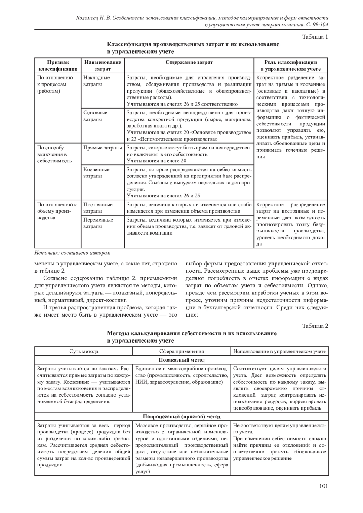 Статья: ОСОБЕННОСТИ ИСПОЛЬЗОВАНИЯ КЛАССИФИКАЦИИ, МЕТОДОВ КАЛЬКУЛИРОВАНИЯ И ФОРМ ОТЧЕТНОСТИ В УПРАВЛЕНЧЕСКОМ УЧЕТЕ ЗАТРАТ КОМПАНИИ (2025)