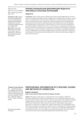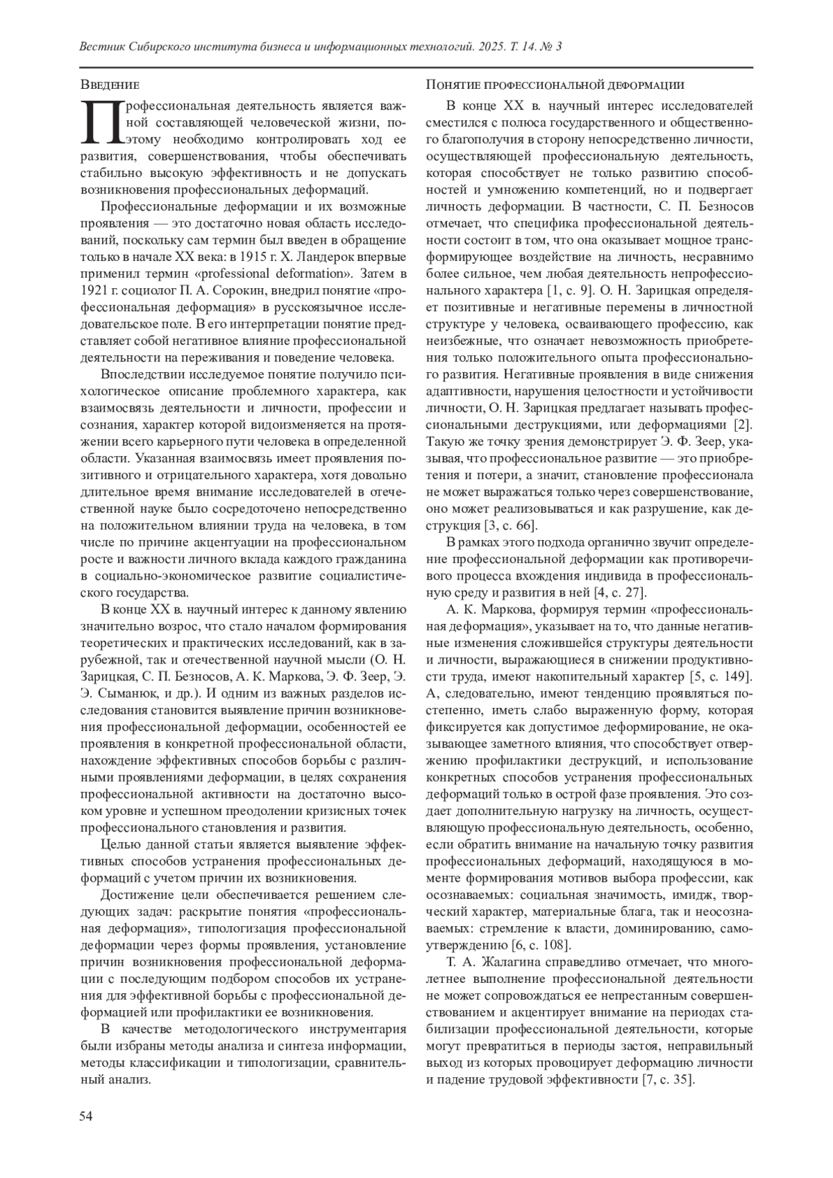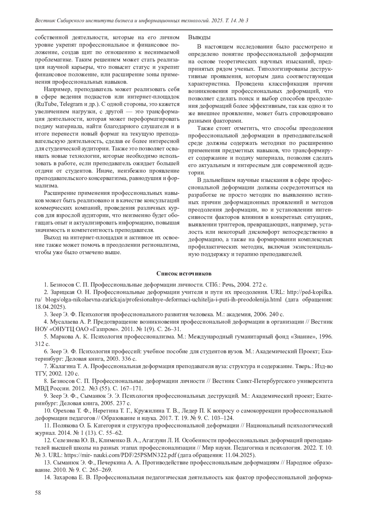 ЧАЩИНА Е. И. ПРОФЕССИОНАЛЬНАЯ ДЕФОРМАЦИЯ ПЕДАГОГА: ПРИЧИНЫ И СПОСОБЫ КОРРЕКЦИИ // ВЕСТНИК СИБИРСКОГО ИНСТИТУТА БИЗНЕСА И ИНФОРМАЦИОННЫХ ТЕХНОЛОГИЙ. 2025. ТОМ 14, № 3