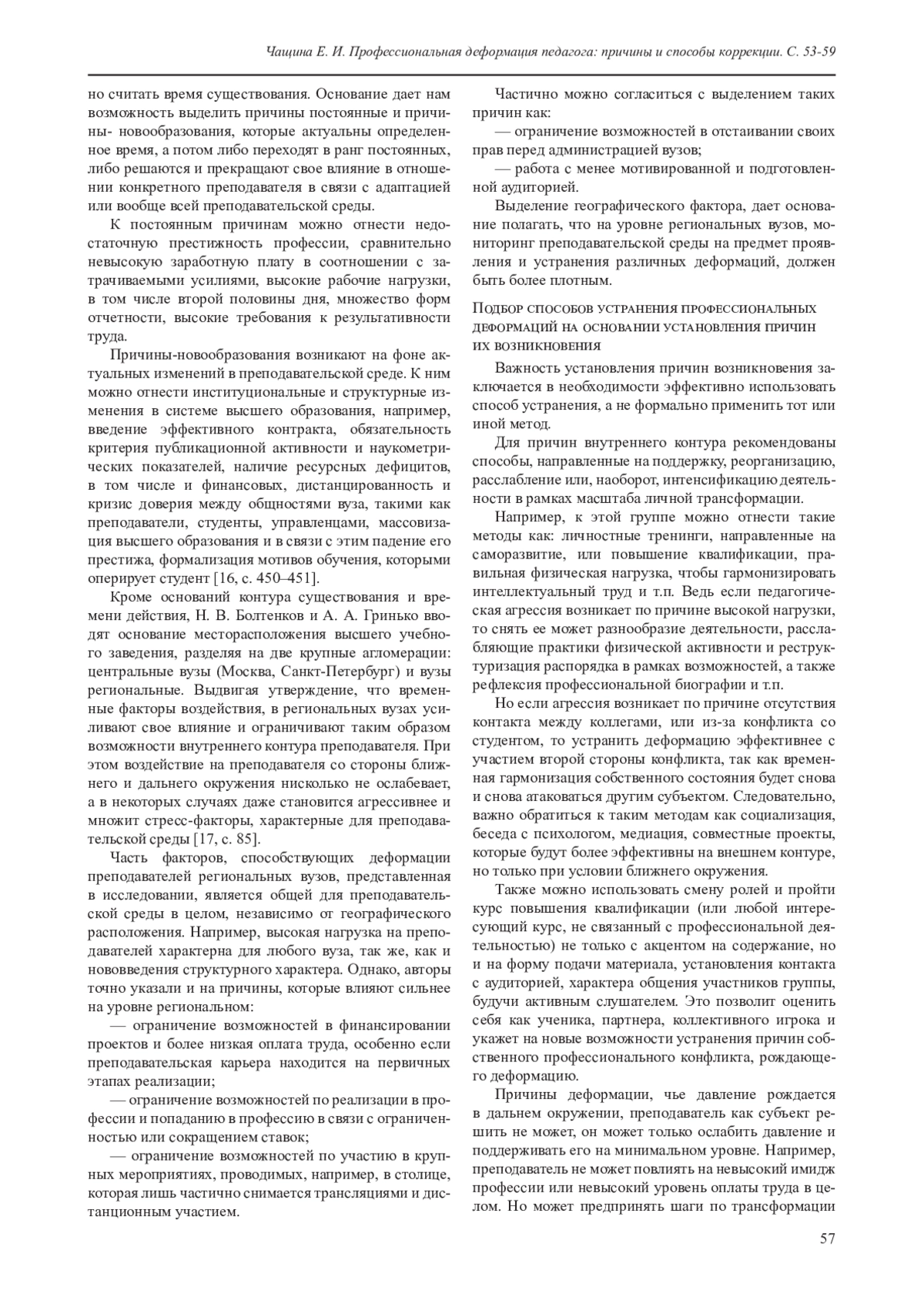 Целью данной статьи является обоснование выбора эффективных способов устранения проявлений профессиональной деформации в преподавательской сфере с учетом причин, способствующих их возникновению. Объектом исследования является преподавательская среда высшей школы, а предметной областью профессиональная деформация деятельности преподавателя, требующая выявления действительных причин формирования деформаций и использования соответствующего комплекса мер для устранения их негативных проявлений. Методологическую основу статьи составили такие методы как анализ источников, опубликованных исследовательских данных, моделирование. В результате проведенного анализа обоснована необходимость учета причин, вызывающих профессиональную деформацию, для повышения эффективности методов устранения. Полученные результаты могут применяться преподавателями на любом этапе реализации профессиональной деятельности.