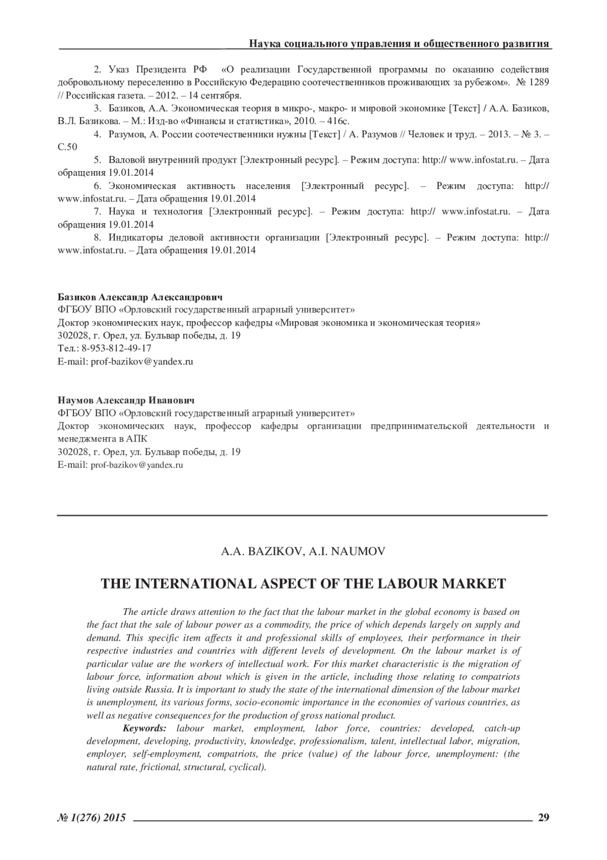 3. Базиков, А.А. Экономическая теория в микро-, макро- и мировой экономике [Текст] / А.А. Базиков, В.Л. Базикова. - М.: Изд-во «Финансы и статистика», 2010. - 416с. EDN: SUOHYL