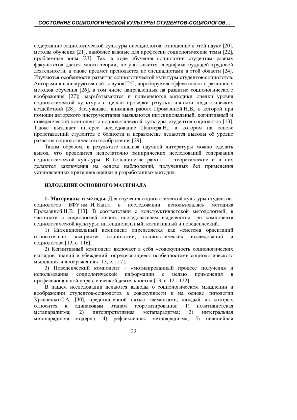 30. Кравченко С.А. Динамика социологического мышления и воображения / С.А. Кравченко // Социологические исследования. - 2009. - № 8. - С. 14-24. EDN: KTUKLT