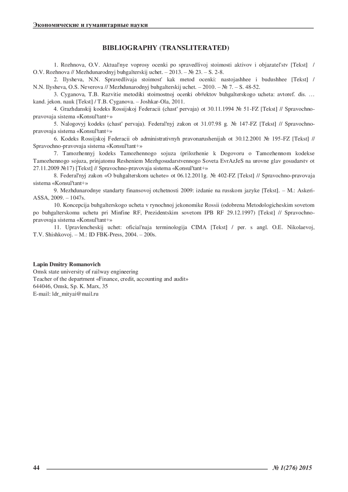 10. Концепция бухгалтерского учета в рыночной экономике России (одобрена Методологическим советом по бухгалтерскому учету при Минфине РФ, Президентским советом ИПБ РФ 29.12.1997) [Текст] // Справочно-правовая система «Консультант ».