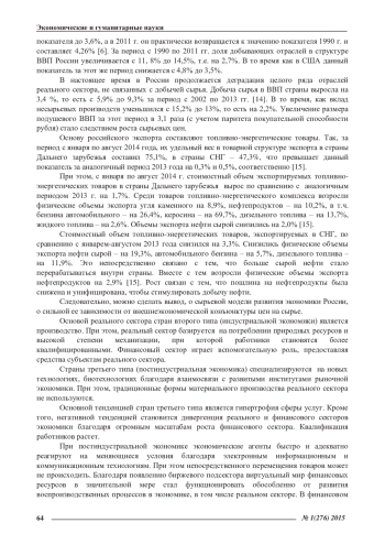 С точки зрения К. Кларка, народное хозяйство можно представить в виде трех секторов [2]. Первичный сектор включает сельское хозяйство, лесное хозяйство, топливную промышленность, черную и цветную металлургию, вторичный сектор – электроэнергетику, химическую и нефтехимическую промышленность, машиностроение и металлообработку, лесную, деревообрабатывающую и целлюлозно-бумажную промышленность, промышленность строительных материалов, легкую промышленность, пищевую промышленность, а третичный сектор – строительство, транспорт, связь, оптовую и розничную торговлю, общественное питание, жилищно-коммунальное хозяйство, непроизводственные виды бытового обслуживания населения, здравоохранение, физическую культуру и социальное обеспечение, образование, культуру и искусство, науку и научное обслуживание, финансы, кредит, страхование, управление и другие отрасли