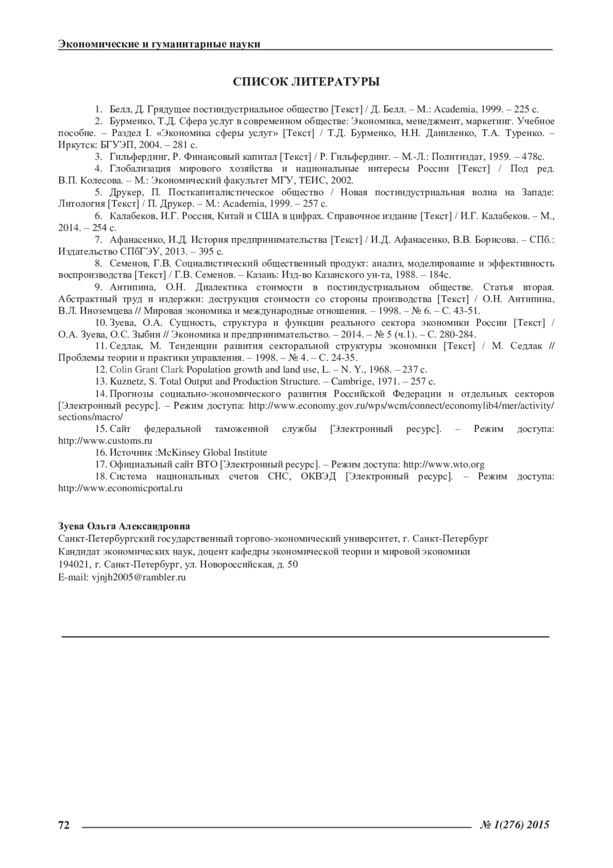 10. Зуева, О.А. Сущность, структура и функции реального сектора экономики России [Текст] / О.А. Зуева, О.С. Зыбин // Экономика и предпринимательство. - 2014. - № 5 (ч.1). - С. 280-284. EDN: SDYHBB