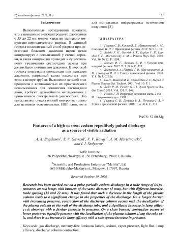 Статья: Особенности сильноточного цезиевого импульсно-периодического разряда как источника видимого излучения (2020)