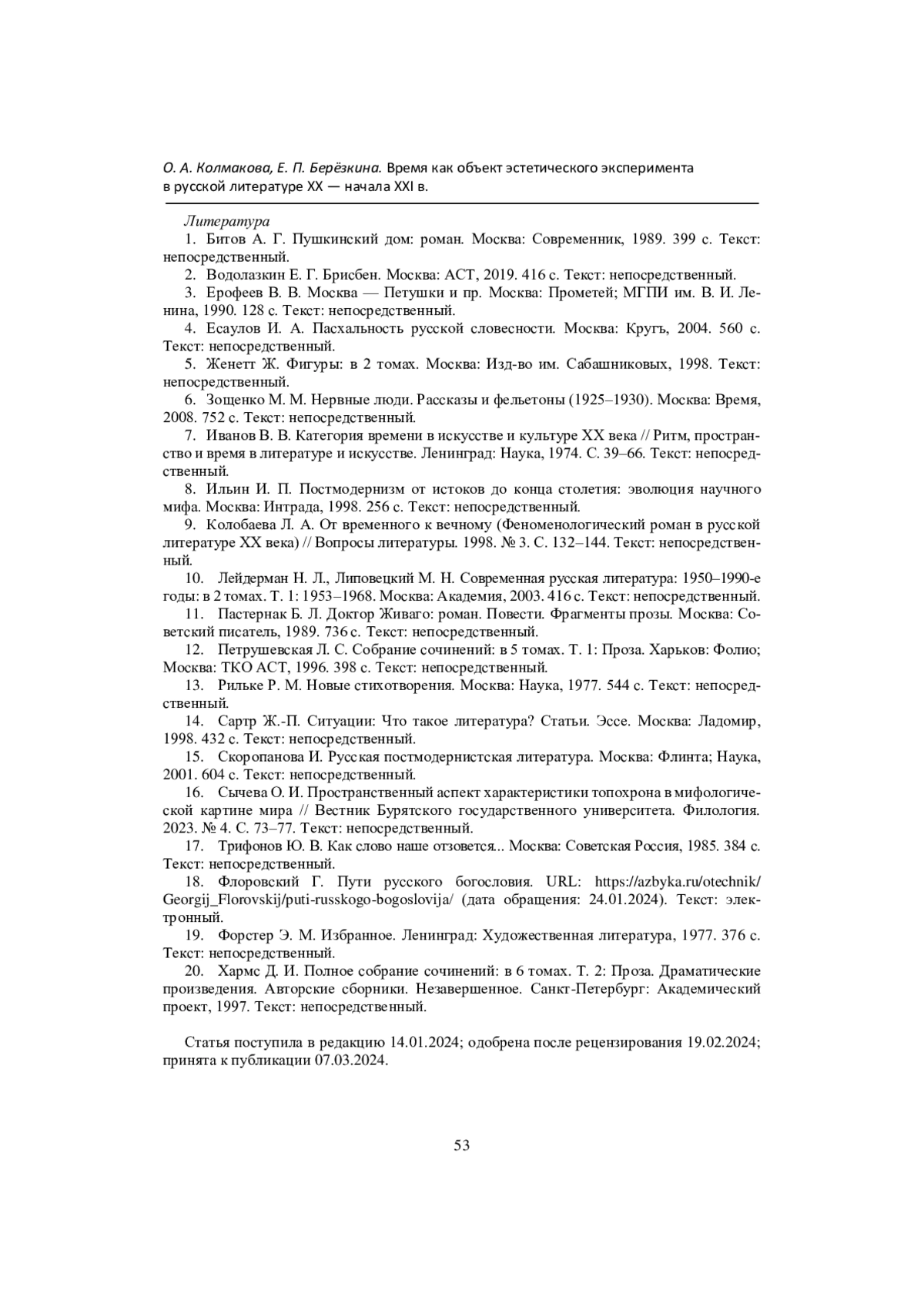 9. Колобаева Л. А. От временного к вечному (Феноменологический роман в русской литературе ХХ века) // Вопросы литературы. 1998. № 3. С. 132-144. Текст: непосредственный.