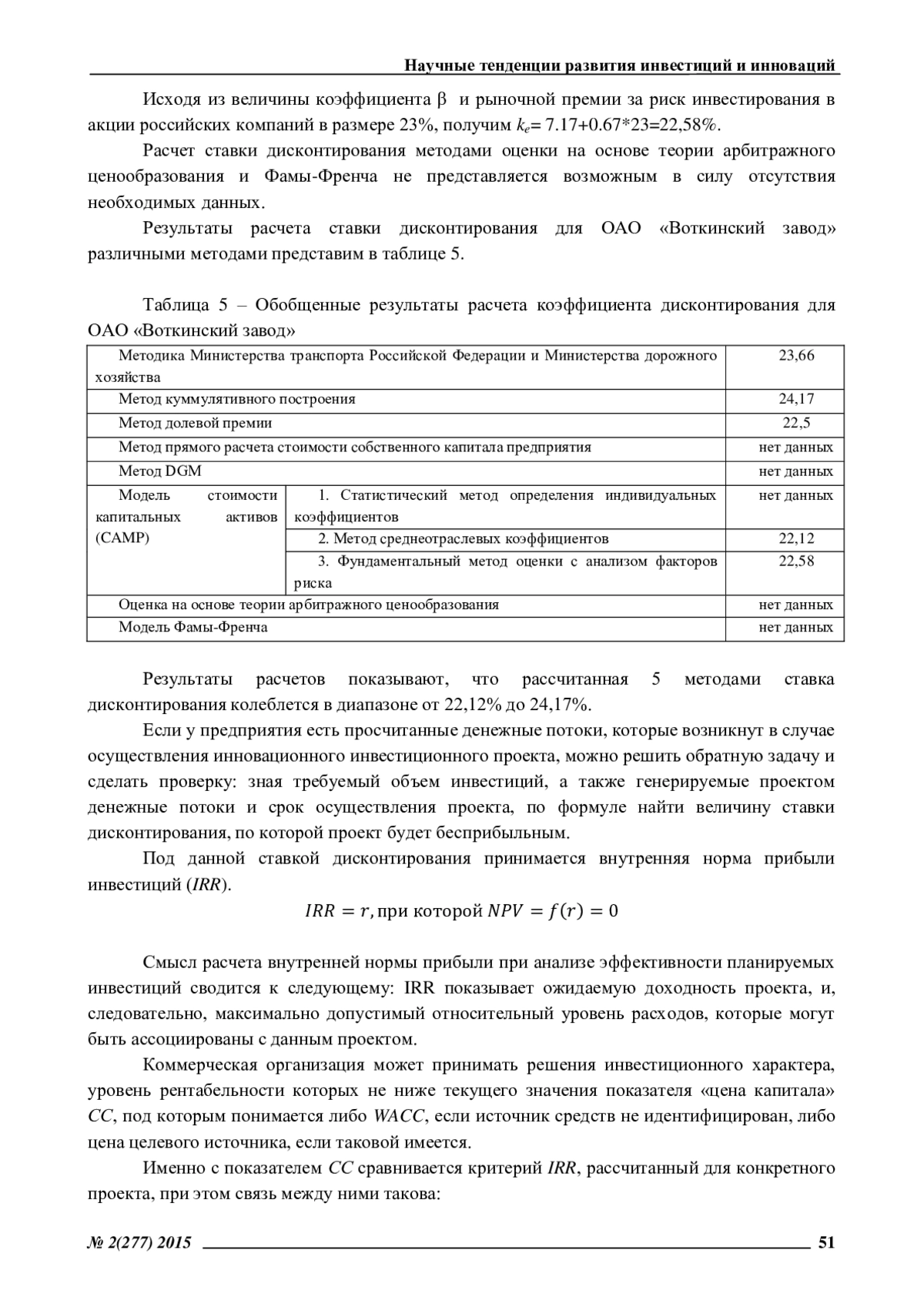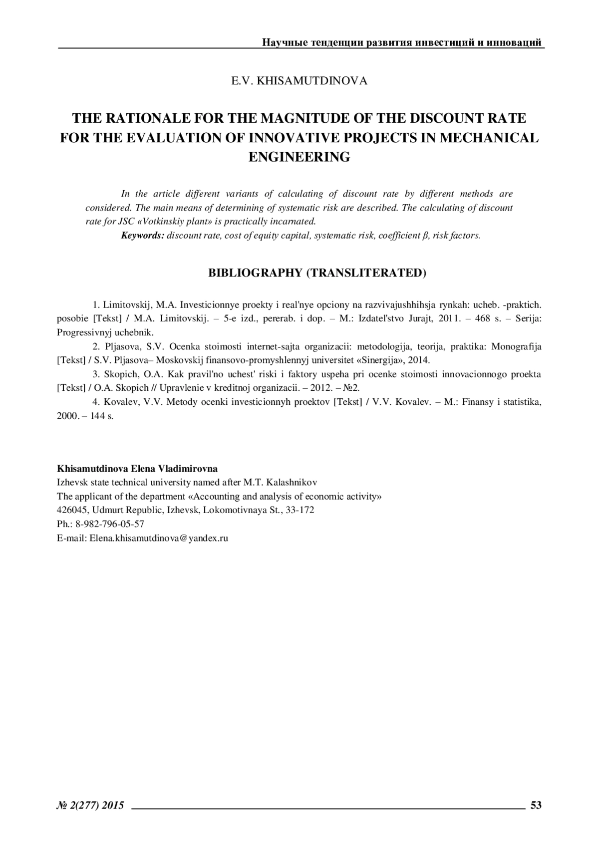 Рассмотрены варианты расчета ставки дисконтирования различными методами. Приведены основные способы определения стоимости собственного капитала предприятия. Рассмотрены варианты определения систематического риска. Практически реализован расчет ставки дисконтирования для ОАО «Воткинский завод»