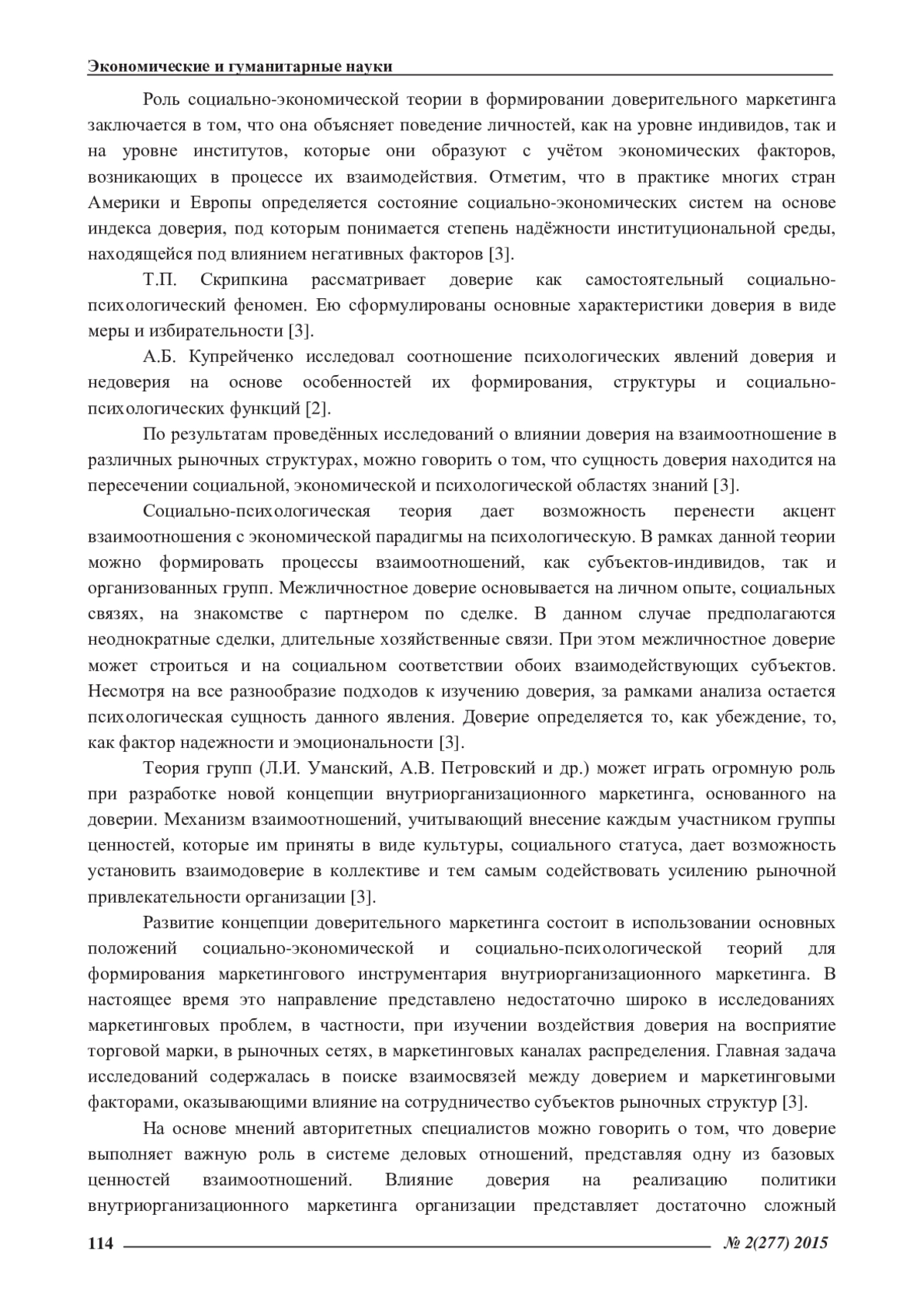 2. Купрейченко, А.Б. Психология доверия и недоверия /А.Б. Купрейченко. -М.: Изд-во “Институт психологии РАН”, 2008. -571 с. EDN: QCTDHR