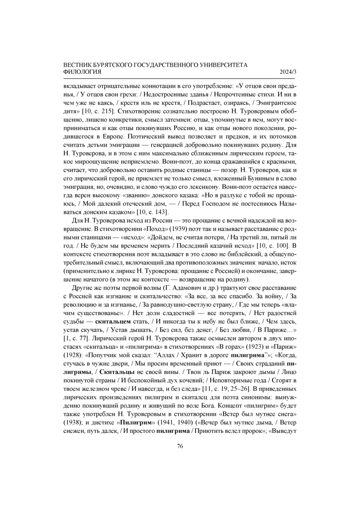 18. Галаганова С. Г. “А я рожден в просторе диком”. Блоковские мотивы в поэзии Николая Туроверова // Альманах “Казачество”. 2015. № 12. С. 25-31. Текст: непосредственный. EDN: VVNUEZ