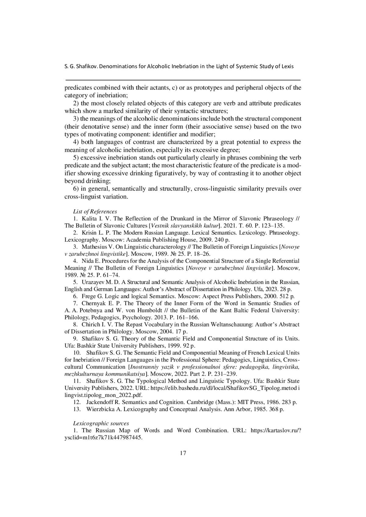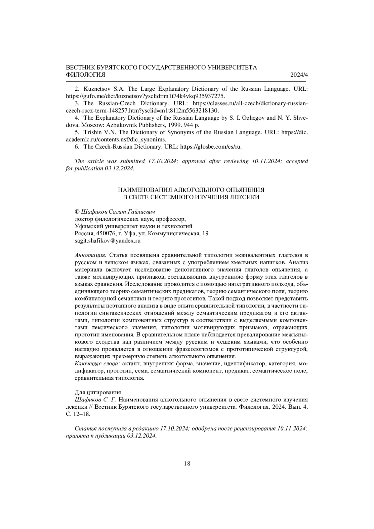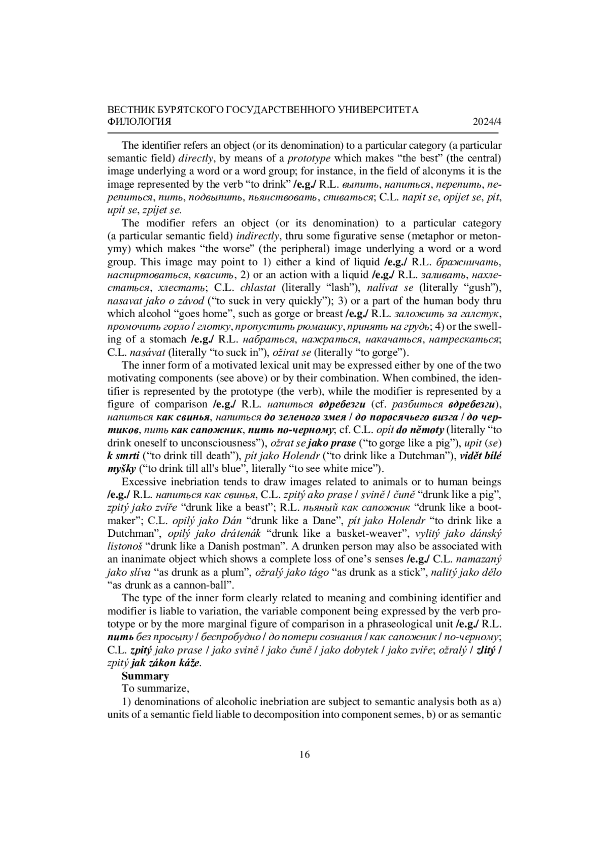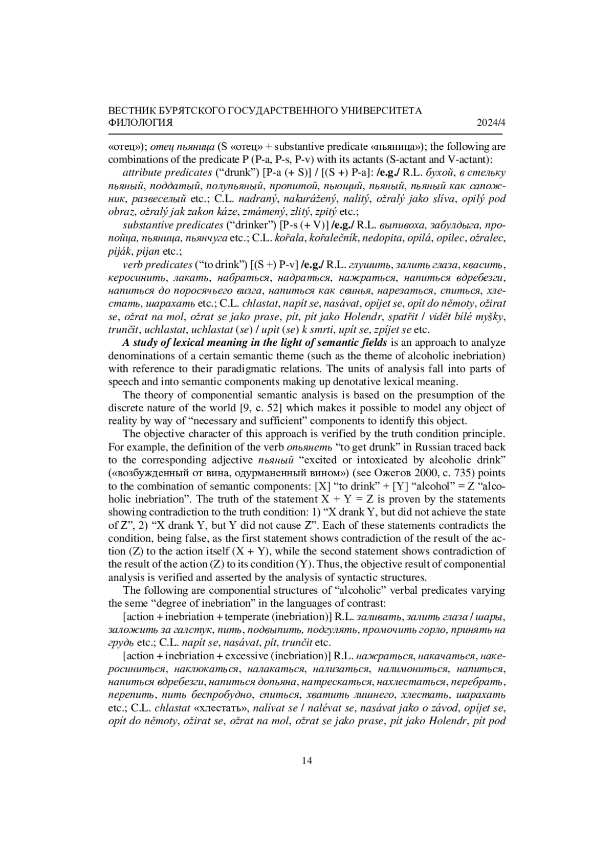 Статья: НАИМЕНОВАНИЯ АЛКОГОЛЬНОГО ОПЬЯНЕНИЯ В СВЕТЕ СИСТЕМНОГО ИЗУЧЕНИЯ ЛЕКСИКИ (2024)