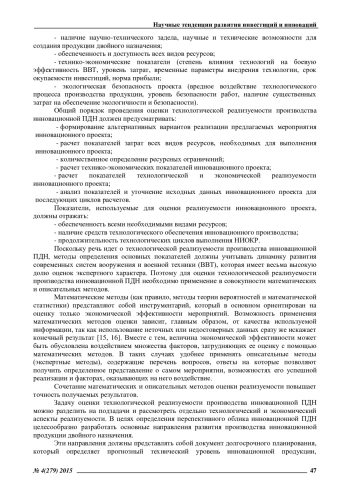 Статья: МЕТОДИКА ОЦЕНКИ ТЕХНОЛОГИЧЕСКОЙ РЕАЛИЗУЕМОСТИ ПРОИЗВОДСТВА ИННОВАЦИОННОЙ ПРОДУКЦИИ ДВОЙНОГОНАЗНАЧЕНИЯ (2015)