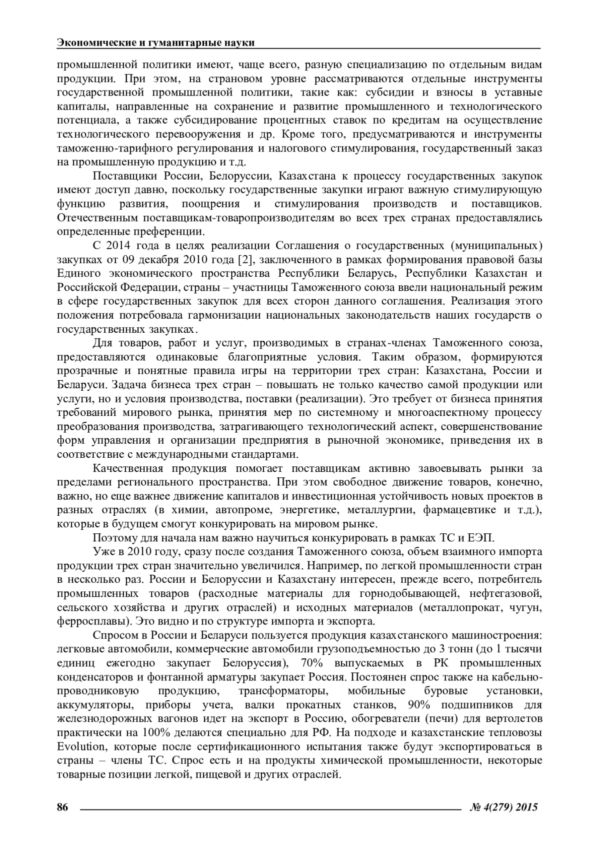 В статье рассматриваются проблемы и возможные решения по дальнейшему развитию Таможенного Союза по унификации законодательств стран в сфере развития системы государственных закупок в Республике Беларусь, Республике Казахстан и Российской Федерации. Автором проведен анализ национальных законодательств, рассмотрен вопрос о необходимости проведения между странами согласованной отраслевой промышленной политики, направленной на: расширение производственной кооперации, исключение создания дублирующих производств. Именно в Программах стратегического планирования странового уровня отмечается высокая степень совпадения приоритетных отраслей государств, хотя направления промышленной политики имеют, чаще всего, разную специализацию по отдельным видам продукции