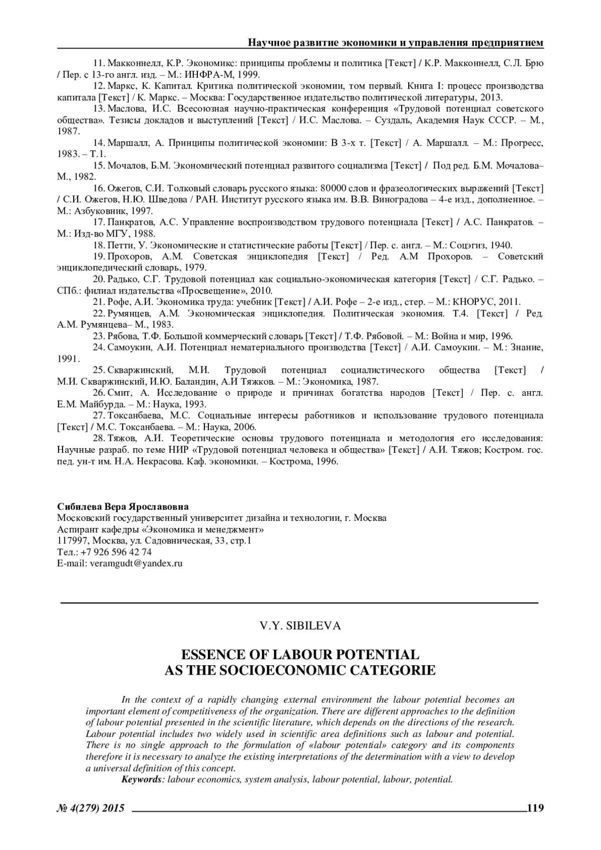 20. Радько, С.Г. Трудовой потенциал как социально-экономическая категория /С.Г. Радько. -СПб.: филиал издательства «Просвещение», 2010. EDN: YAIMYC