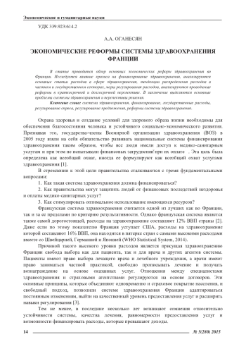 В статье проводится обзор основных экономических реформ здравоохранения во Франции. Исследуется влияние кризиса на финансирование здравоохранения, анализируются основные статьи расходов в сфере здравоохранения, тенденции распределения расходов в частном и государственном секторах, меры регулирования расходов, анализируются проводимые реформы в краткосрочной и долгосрочной перспективе. В заключение выделяются основные проблемы системы здравоохранения и перспективы решения