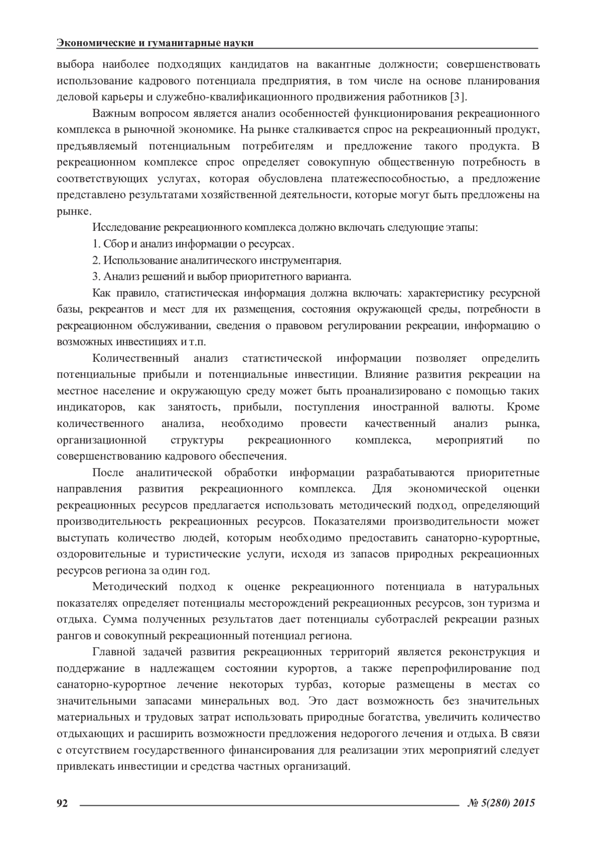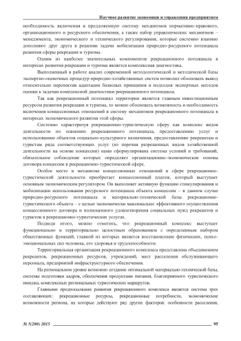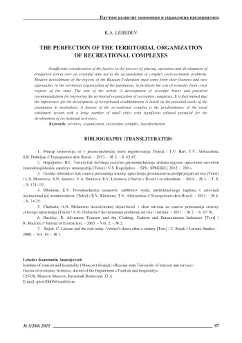 Статья: СОВЕРШЕНСТВОВАНИЕ ТЕРРИТОРИАЛЬНОЙ ОРГАНИЗАЦИИ РЕКРЕАЦИОННЫХ КОМПЛЕКСОВ (2015)