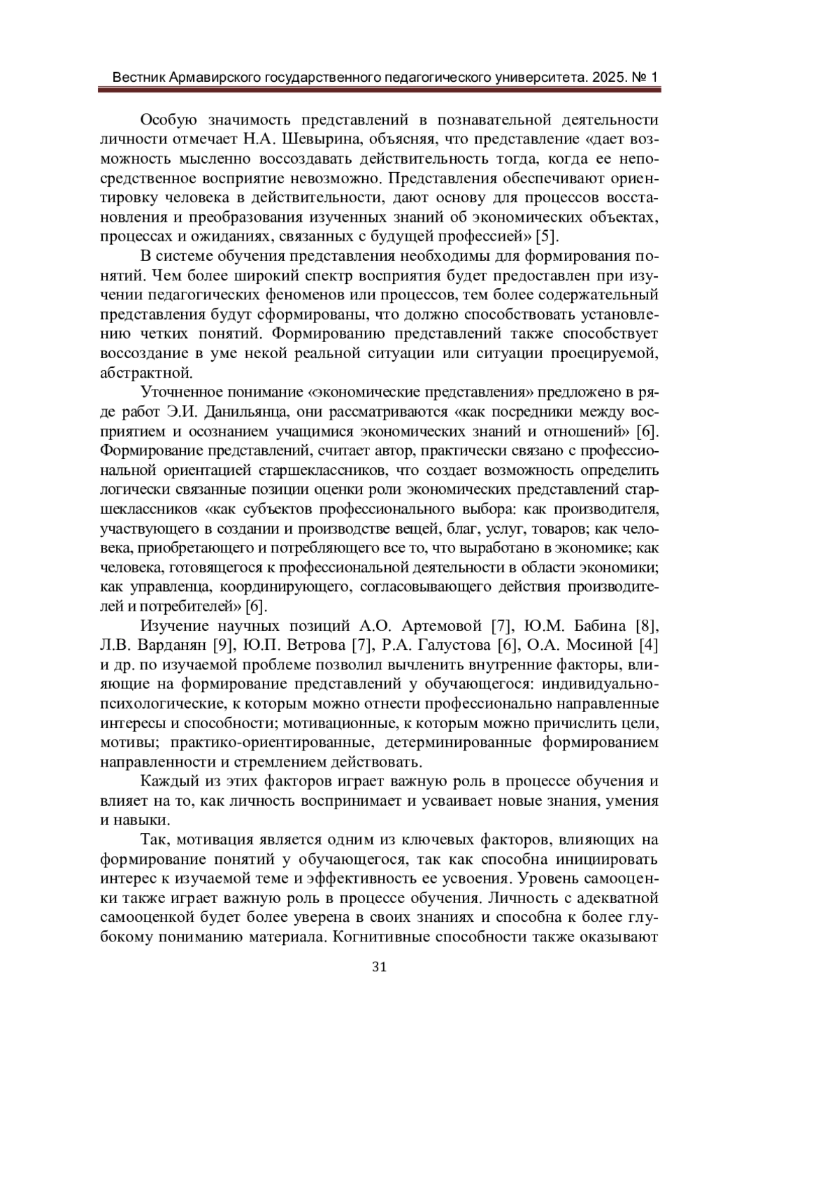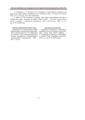 6. Данильянц, Э. И. Формирование экономических представлений старшеклассников в условиях профильного обучения: монография / Э. И. Данильянц, Р. А. Галустов. - Армавир: РИО АГПУ, 2019. - 128 с. - Текст: непосредственный. EDN: UQYPIL