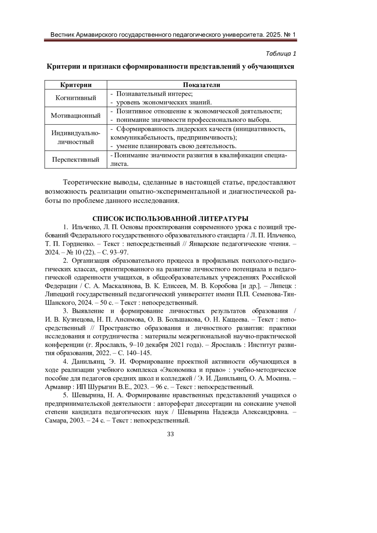 5. Шевырина, Н. А. Формирование нравственных представлений учащихся о предпринимательской деятельности: автореферат диссертации на соискание ученой степени кандидата педагогических наук / Шевырина Надежда Александровна. - Самара, 2003. - 24 с. - Текст: непосредственный. EDN: NIMVBJ