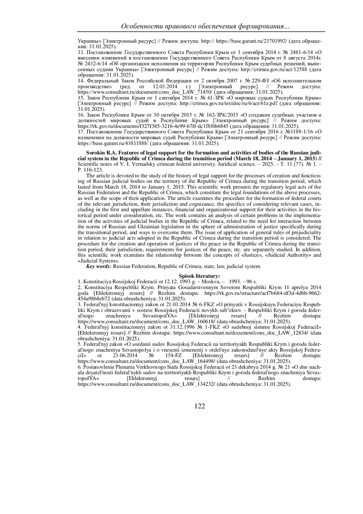 5. Федеральный закон “О создании судов Российской Федерации на территориях Республики Крым и города федерального значения Севастополя и о внесении изменений в отдельные законодательные акты Российской Федерации” от 23.06.2014 № 154-ФЗ [Электронный ресурс] // Режим доступа: https://www.consultant.ru/document/cons_doc_LAW_164498/(дата обращения: 31.01.2025).