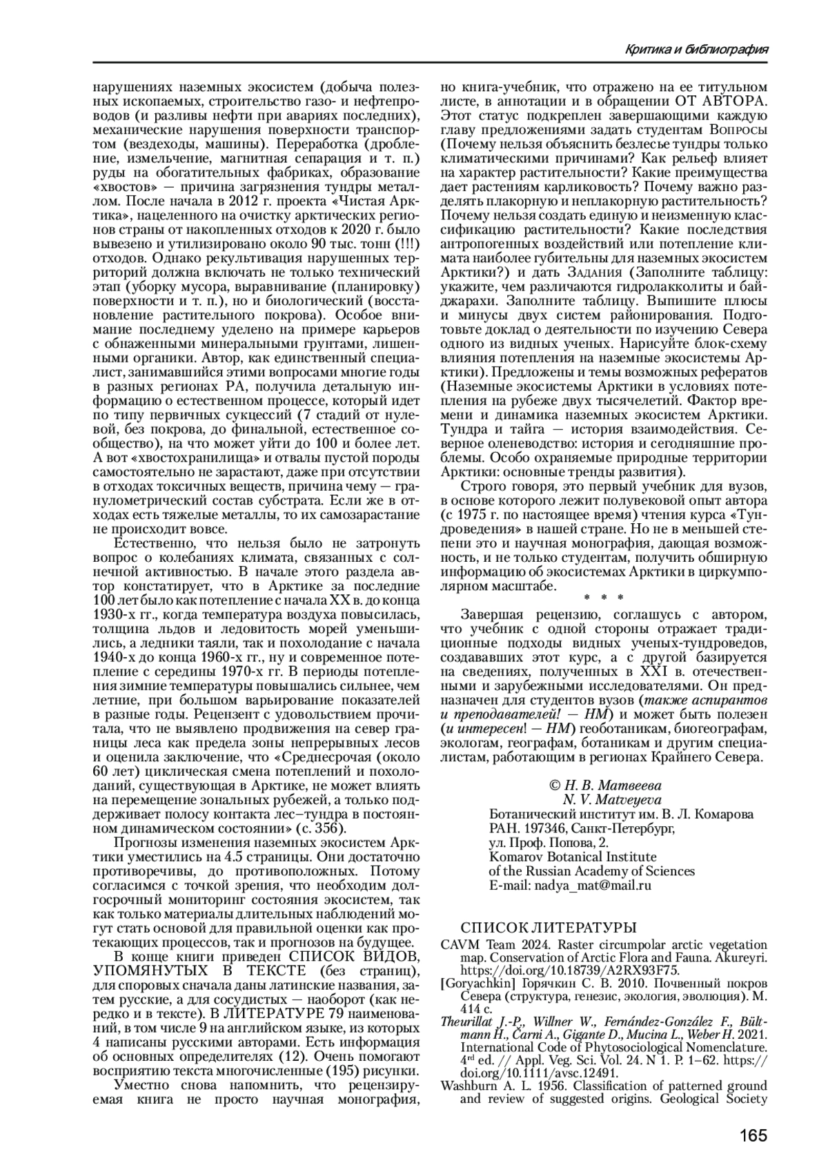 МАТВЕЕВА Н.В. О. И. СУМИНА. ТУНДРОВЕДЕНИЕ. НАЗЕМНЫЕ ЭКОСИСТЕМЫ АРКТИКИ. УЧЕБНИК. 2024. САНКТ-ПЕТЕРБУРГ. ЛАНЬ. 400 С. // РАСТИТЕЛЬНОСТЬ РОССИИ. 2025. № 50