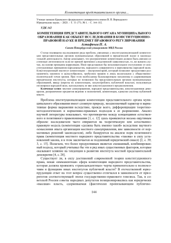 19. Упоров И.В. Компетенция представительного органа муниципального образования: праворегулирующий аспект // Modern Science. 2019. № 3. С. 278-281.