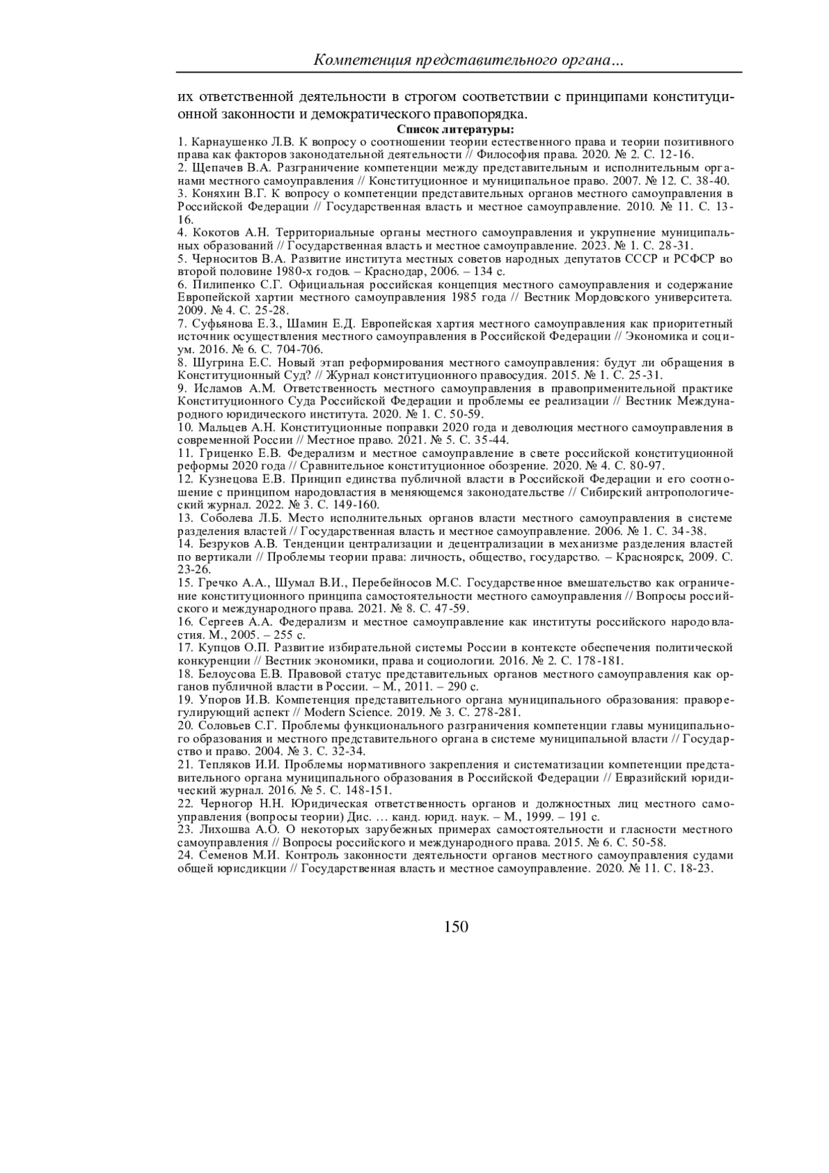 12. Кузнецова Е.В. Принцип единства публичной власти в Российской Федерации и его соотношение с принципом народовластия в меняющемся законодательстве // Сибирский антропологический журнал. 2022. № 3. С. 149-160. EDN: IZRARU
