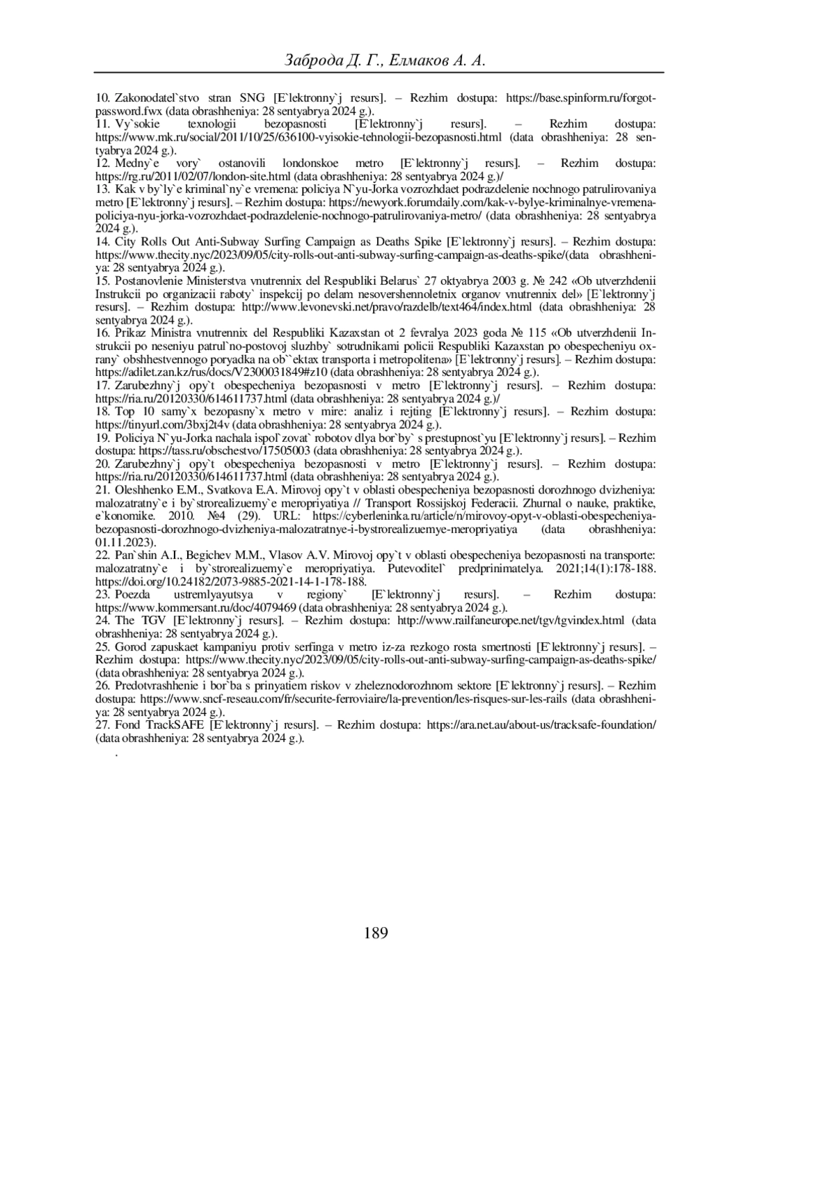 25. Город запускает кампанию против серфинга в метро из-за резкого роста смертности [Электронный ресурс]. - Режим доступа: https://www.thecity.nyc/2023/09/05/city-rolls-out-anti-subway-surfmg-campaign-as-deaths-spike/(дата обращения: 28 сентября 2024 г.).